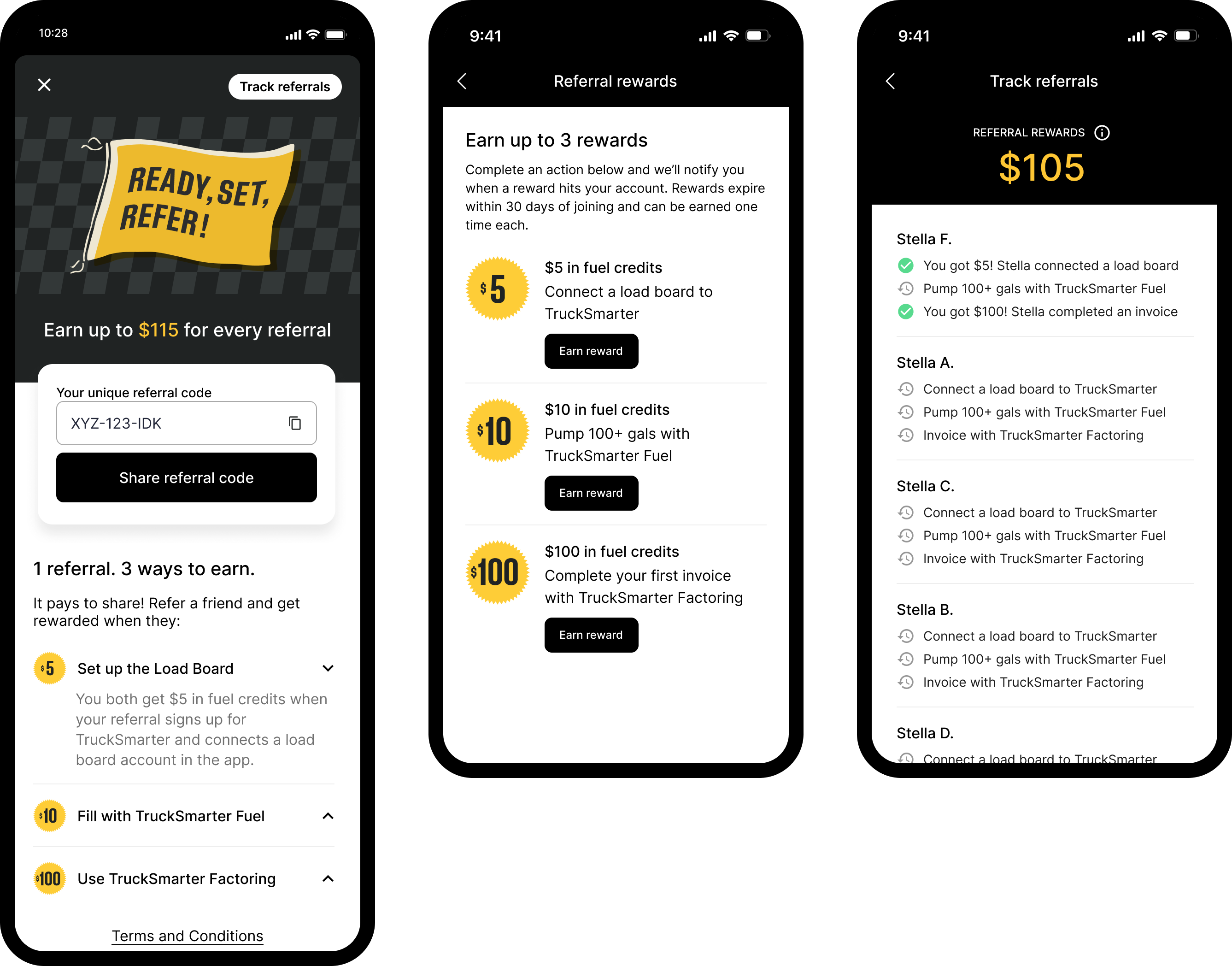 Build a referral program for truck drivers to encourage them to try the whole product offerings